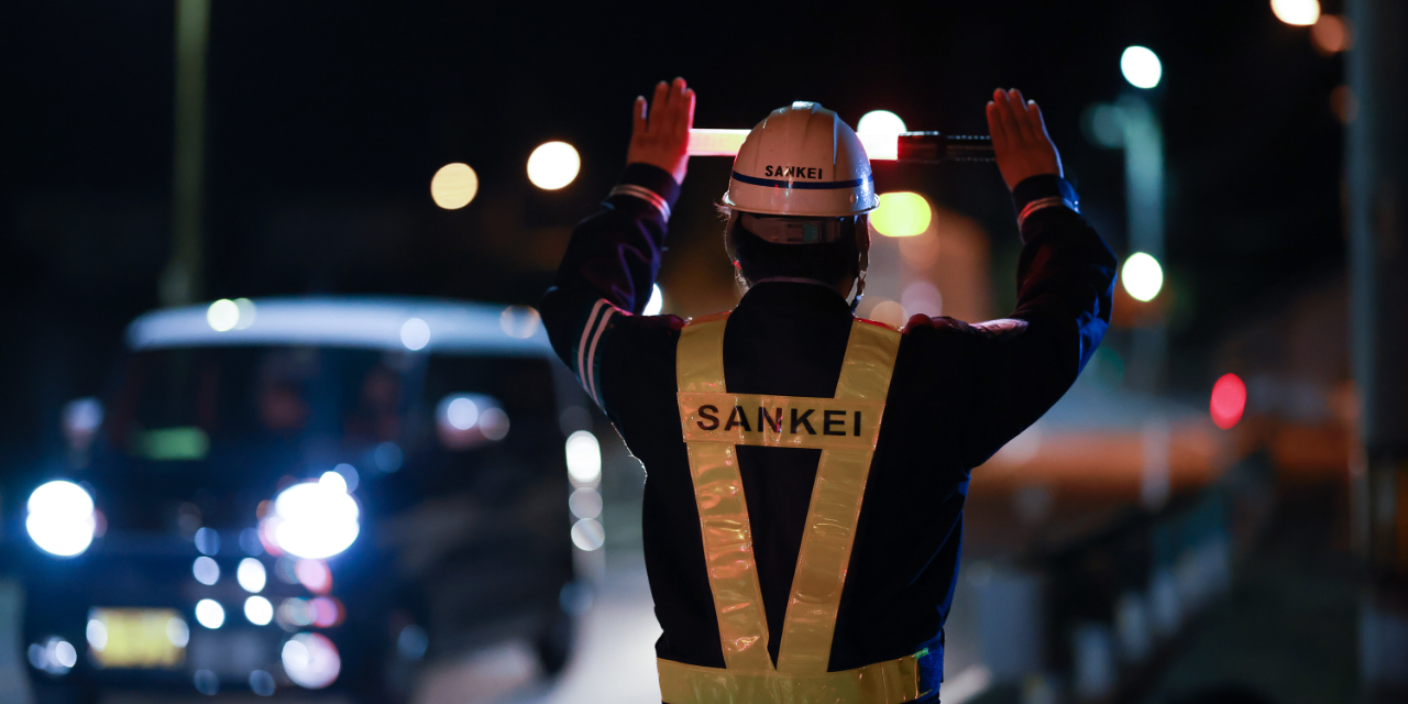 主に道路上において一般通行者と作業者等の安全を守り円滑な交通誘導を行います。